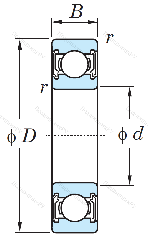 Однорядный шариковый подшипник 6815 2RU