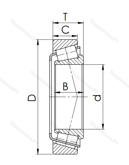 Строение данного типа детали состоит из сепаратора, роликов, а также двух колец, располагающихся снаружи и внутри. Отличительной чертой механизма является конусовидная форма роликов, удерживаемых ободом кольца, благодаря чему они могут одновременно воспринимать сочетание осевых и радиальных нагрузок.